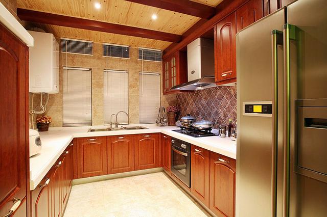 U型属于较为紧凑的厨房,若能装成U字形是最为实用方便的,可以把水槽、切菜、炒菜这些功能合理分区布局,基本上所有操作都在一个点,没有动线、转身即可,做饭体验实用方便。