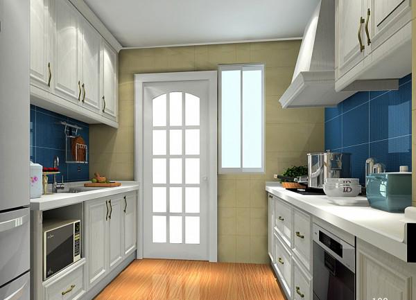 这种二字形的厨房布局,一般是有生活阳台的厨房,因为有个“后门”,所以操作台布局只能跟着厨房的墙体布局成二字型了。