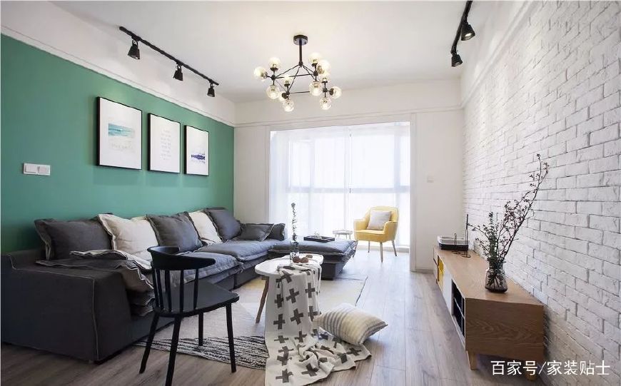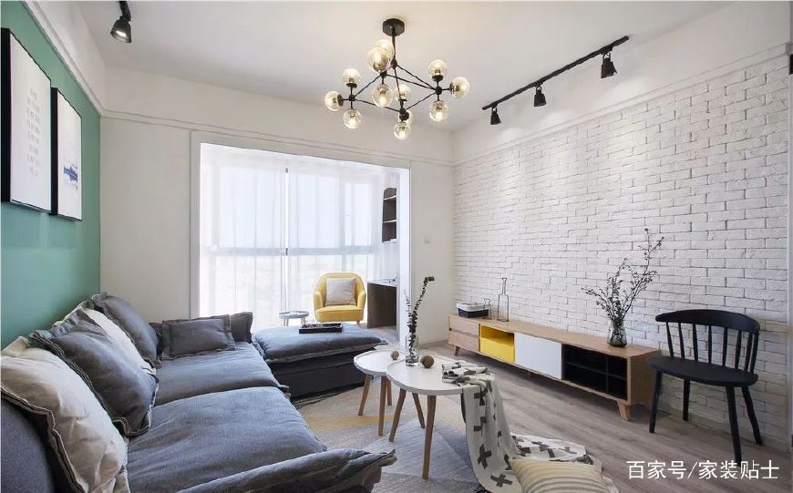 ▲ 乳白色带点朦胧视感的落地窗,大面积的文化砖和分子魔豆灯的搭配,增加采光的同时还显得格外通透。