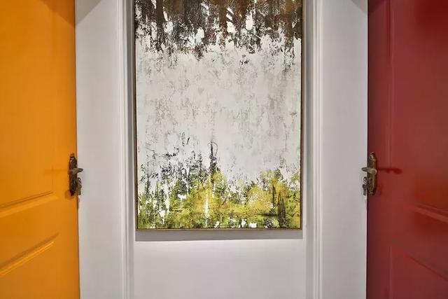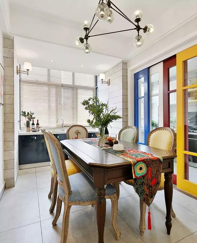 色彩斑斓的推拉移门让餐厅与厨房都多了一道别样的风景