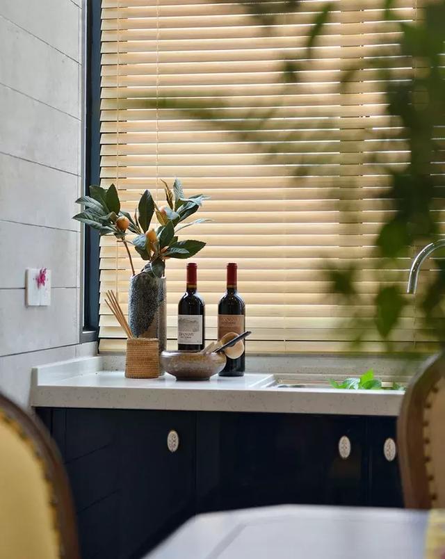 扩充到餐厅的北阳台临窗设置了水吧台,良好的解决了厨房和餐厅空间不足的尴尬