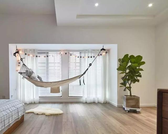 一些比较新的楼盘,整个建筑外观都是玻璃面的,这种房子的卧室,一般都是装落地窗的;因为落地窗采光好,这种卧室整体会更明亮,光线自然舒适,