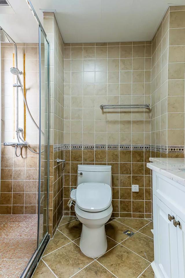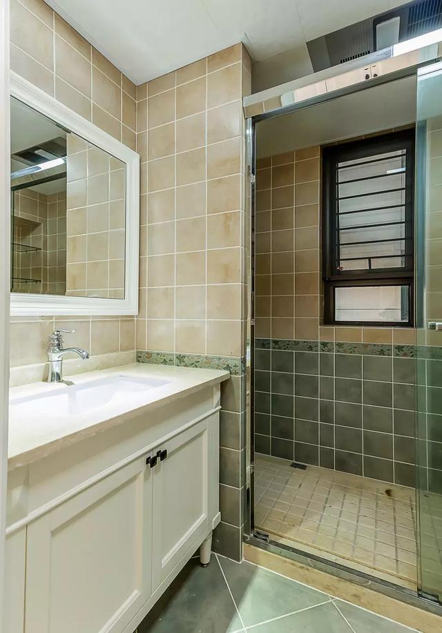 ▲主卫做旧质感的砖色以花砖腰线作过渡,整体给人质朴大方的感觉。