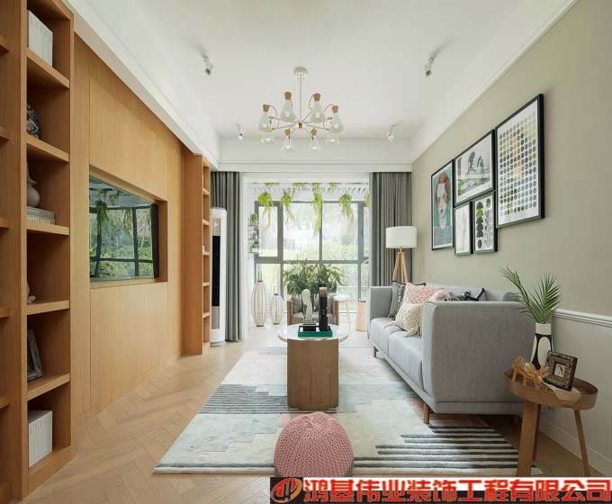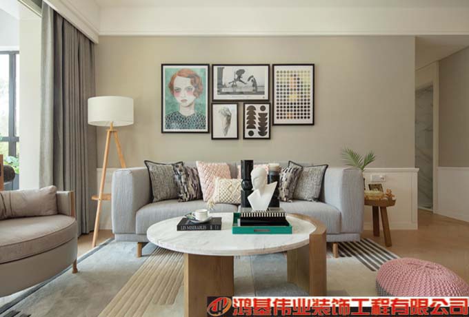 本项目以北欧风格为基调,大量白色和原木色的运用,灰色的沙发,温润的木质元素,在良好的采光下,很好的提升了整体的色度,让人享受自然清静、温馨美好的居家生活。
