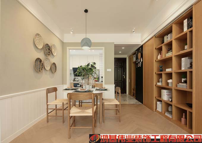 客餐厅整体以白色和原木色为主,搭配同色系的家具显得一致协调,配合暖色灯光,分外温馨,墙上的挂饰加上餐桌上的绿植,每一处细节都经过精心布置,充满了仪式感。