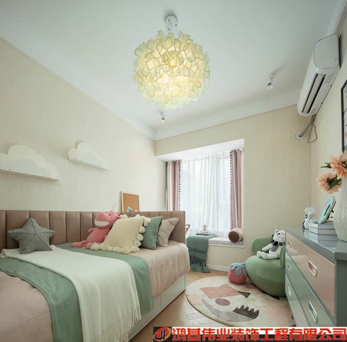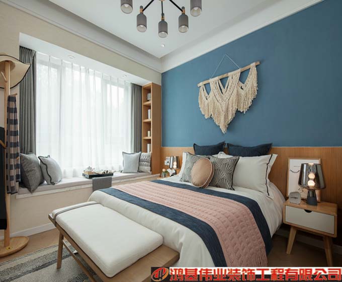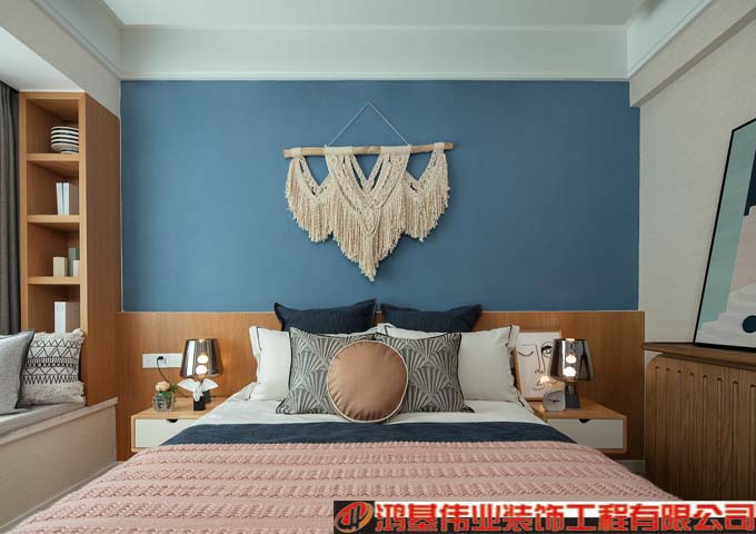 主卧的大飘窗让人心动,阳光洒入、微风几许一片岁月静好,暖色床品、软装挂饰搭配,营造出宁静淡雅的睡眠环境。整体色调偏暖,简约温暖舒适,床头的小台灯在夜晚照亮属于自己的小天地。