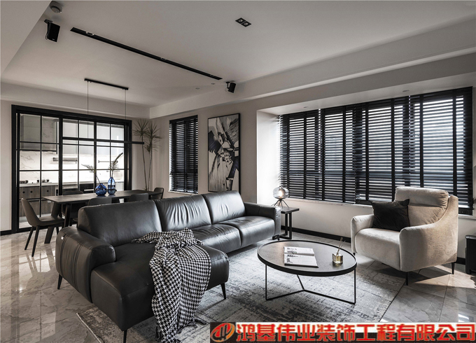 黑白灰为主色调的装修方案,营造出明亮通透舒适惬意的大空间