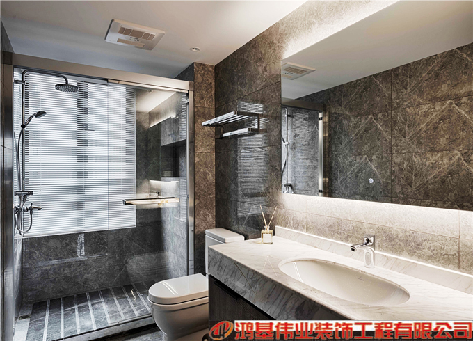 业主比较喜欢酒店风格,因经常出差住酒店,所以对卫生间比较注重,三分离的设计,爵士白天然石材的大型台面使用比较舒适。