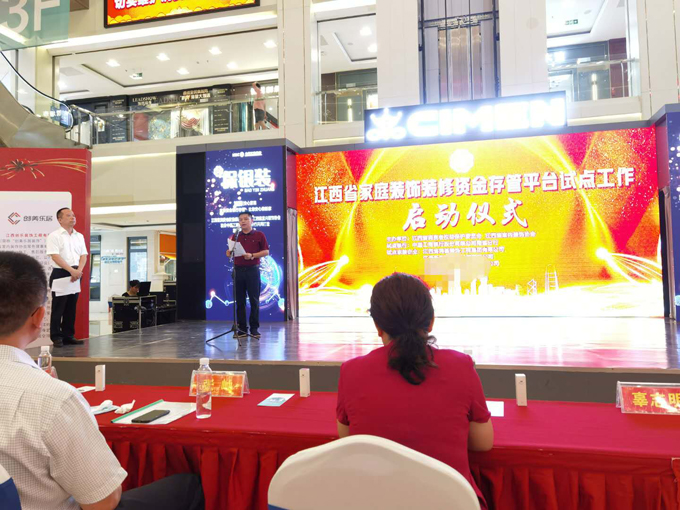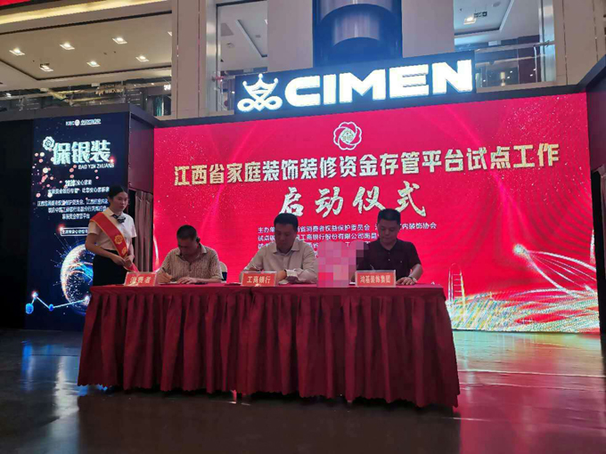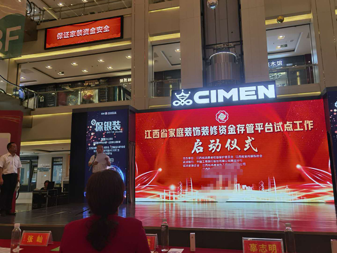 8月10上午,《江西省家庭装饰装修资金存管平台试点工作启动仪式》在江西喜盈门盛大召开!江西省市场监督管理局、消保委、省装饰行业协会、工商银行等领导及部分品牌装饰企业、消费者代表、专家委员会等共计150余人参加了会议。作为江西省室内装饰协会副会长单位、中国装饰行业优秀企业、“保银装”首届执行会长单位、鸿基装饰集团超牌家装公司参加了此次会议。