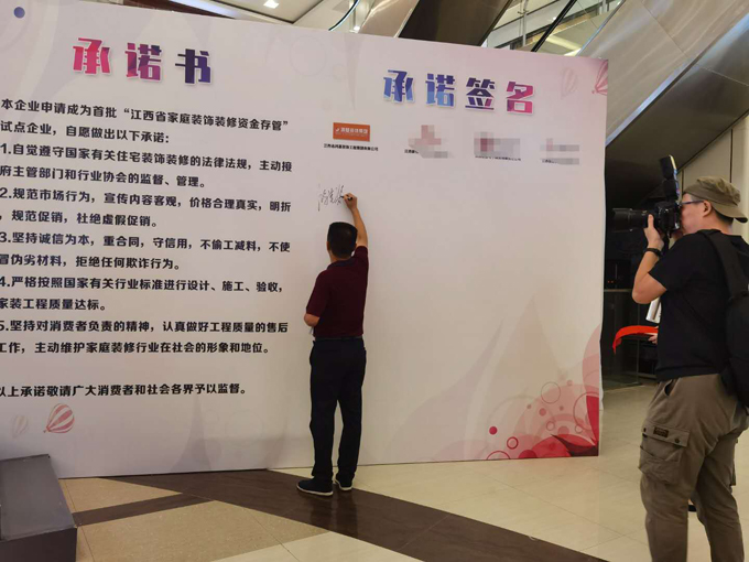 接着,一直对装饰行业卷款跑路等乱象问题担心的消费者陶先生出席本次会议并上台和工商银行、鸿基装饰集团超牌家装公司共同签订了一份《家庭装饰装修资金存管协议》,接受参访时,他说,“保银装”的模式让压在心里的石头终于落下了。“有了“保银装”再也不担心预付的 家装资金被卷跑路。