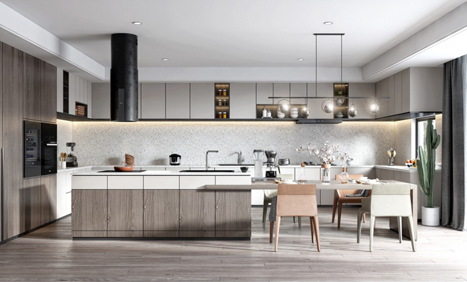板材有吸塑板、烤漆板、双饰板、防火板、实木门板、不锈钢板等,它们各有优势,适合用在不同风格的橱柜设计。
