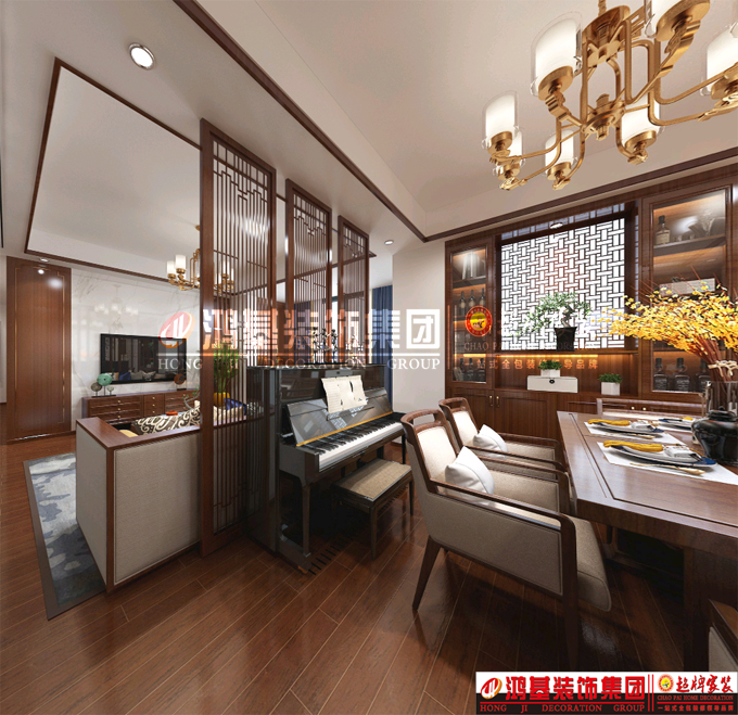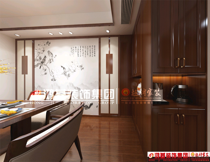 设计理念:整体风格为新中式。在材料的选择上,设计师始终秉持着自然环保的同时,对材料理的质感、肌理、形制、色系都精心考究,其中酌量添加金属等现代装饰材料,使设计更加拥有艺术气息与格调。