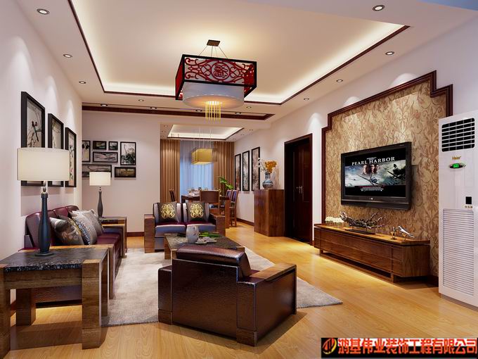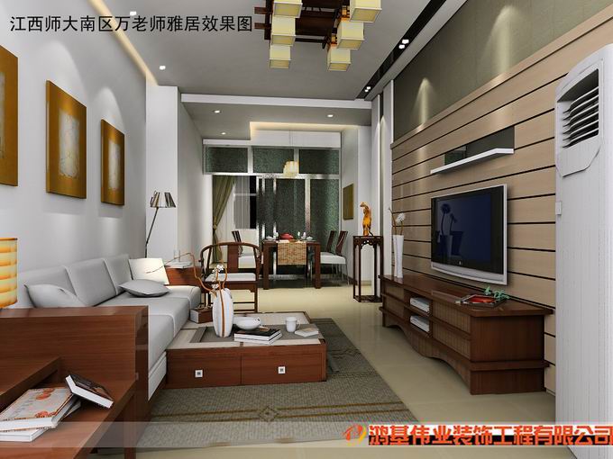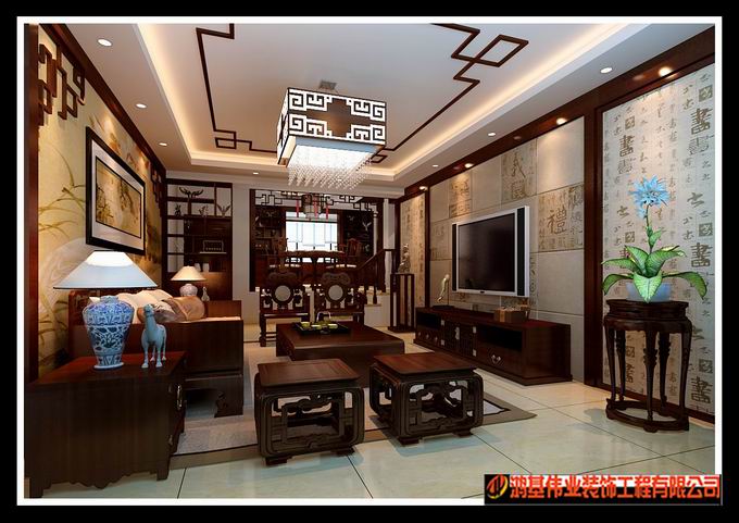 中式风格装修造价较高,且缺乏现代气息,只能在家居中点缀使用。 中式风格的代表是中国明清古典传统家具及中式园林建筑、色彩的设计造型。特点是对称、简约、朴素、格调雅致、文化内涵丰富,中式风格家居体现主人的较高审美情趣与社会地位。 现代社会一些喜欢中式风格的朋友,并不局限于纯粹的中式风格,希望添加一些现代的因素,让中式具有现代感,从而不落俗套。中式风格的客厅具有内蕴的风格,为了舒服,中式的环境中也常常用到沙发,但颜色仍然体现着中式的古朴,中式风格这种表现使整个空间,传统中透着现代,现代中揉着古典。 下面设计效果图是南昌全包鸿基伟业设计师对中式中添加现代风格的简单理解,希望能为客户在选择适合自己的装修风格上提供参考: